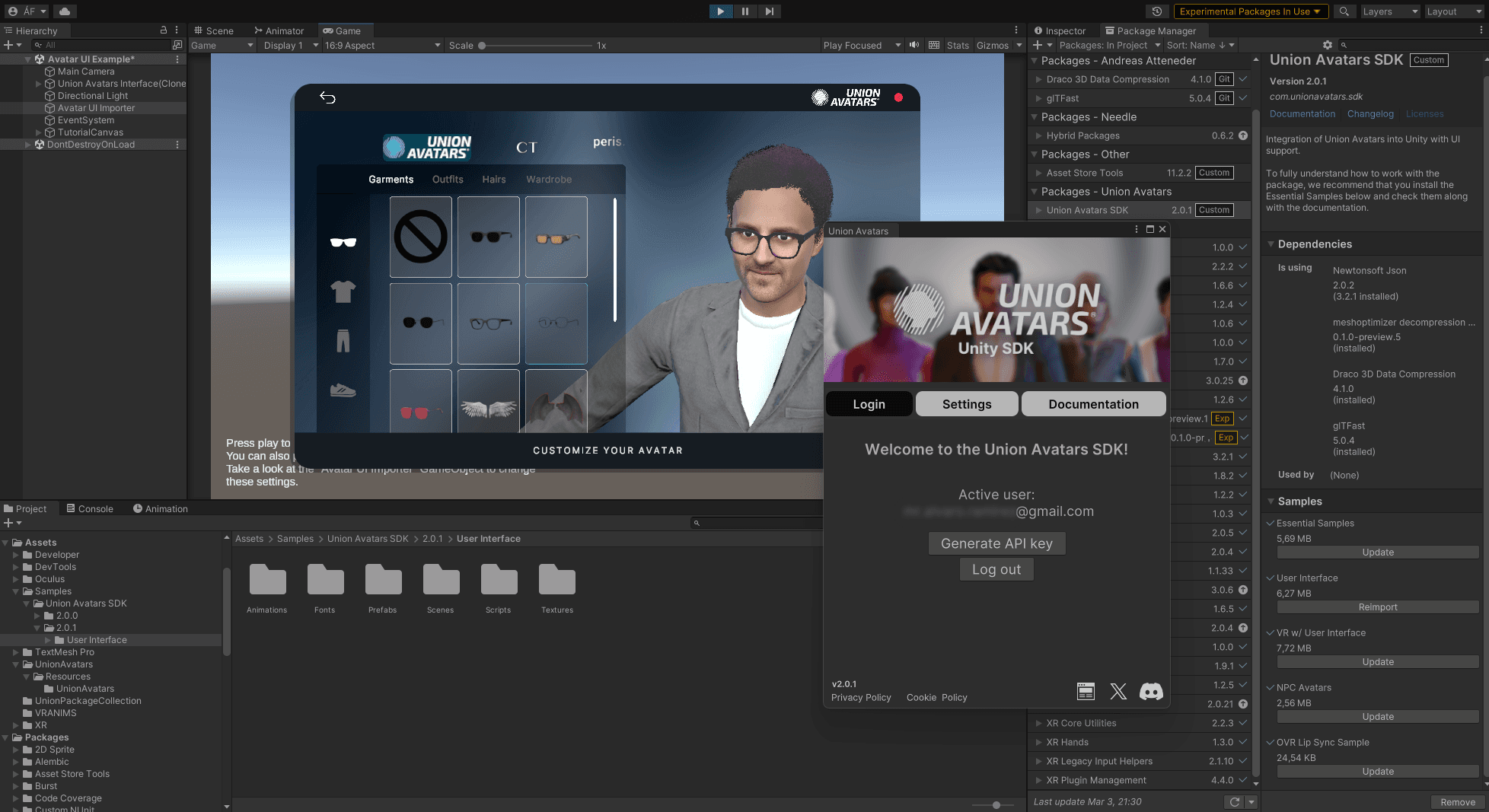Union Avatars is a company based in Barcelona that is developing a service to turn a single selfie into a rigged 3D avatar. We also have an API which allows for further customization on the clothes, hairs and accessories. They approached me to build their SDK for Unity and Unreal Engine so developers can start using these avatars without a single line of code.